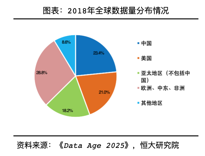数据增长和运用依赖于信息和物理的基础设施构建,中国将成为全球最大的数据中心。得益于人口数量、互联网渗透率、智能手机渗透率、网速等。2018年中国拥有数据量7.6ZB,占全球数据总量的23.4%。随着5G、物联网等发展,通讯设备接入数量和承载能力提高,终端消费者增多,预计中国的数据量将在2025年达48.6ZB,占全球数据总量的27.8%,成为全球最大的数据集中地,将极大的促进和丰富人工智能训练,相关模型结构和结果也更精准。