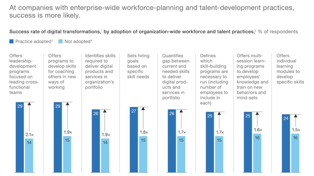 图注:企业扩大他们劳动力计划和人才开发,也更有利于数字化成功。